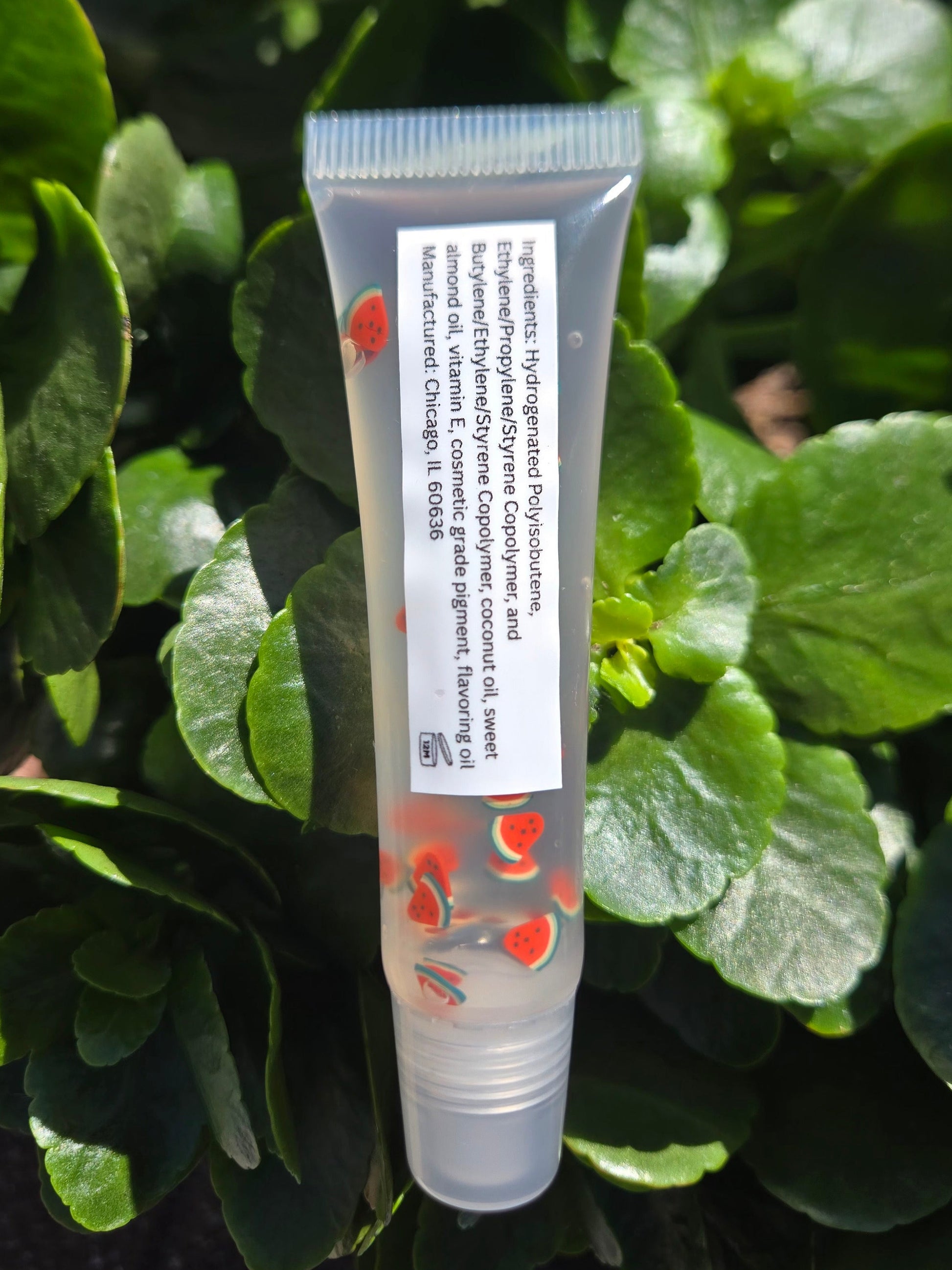 Watermelon scented lip gloss tube leaves the lips shiny without the stickiness and hydrated.